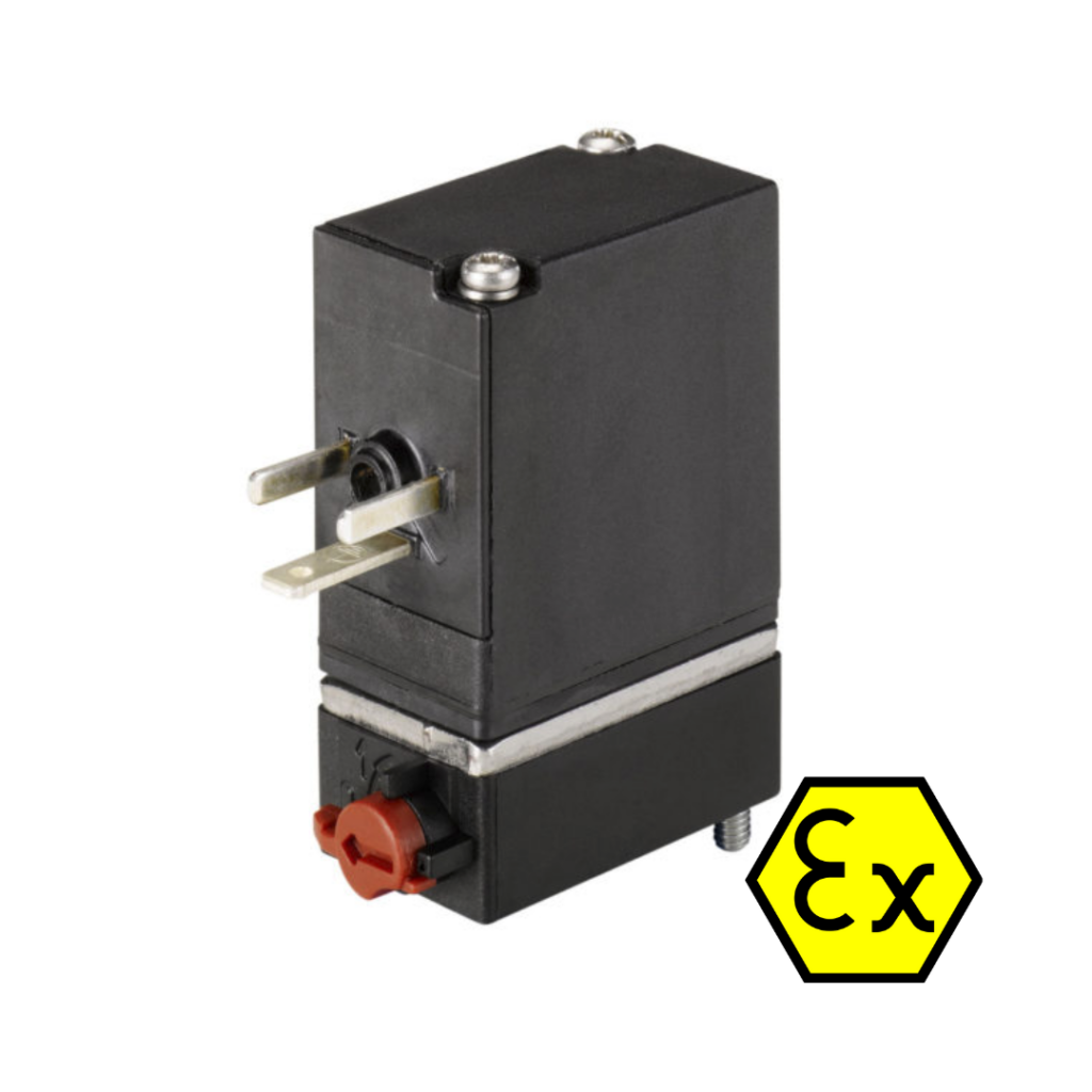 The direct-acting rocker solenoid valve type 6106 is designed for use on neutral gaseous mediums. The heat input in the medium is minimal, because the housing is separated from the coil by a stainless steel plate. The valves can be mounted directly or also single or manifold mounted. They are used for dosing, filling, mixing and distributing small quantities of medium.