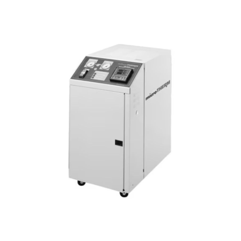This water-circulating temperature controller is designed for precise heating and cooling of injection moulds, dies, rolls, and tanks. It supports water and water/glycol solutions up to 250°F (121°C) with power options ranging from 4.5 to 24 kW. Built with durable 125 lb carbon steel and featuring 1 1/4 in NPT male process connections, it operates on 240 or 480V, 3-phase, 60 Hz power.