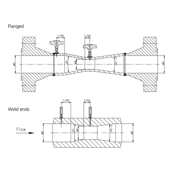 The classical venturi tube is one of the most tested and trusted flow meters on the market. Based on the ISO 5167-4 standard, it offers durable flow measurement with minimal pressure loss.