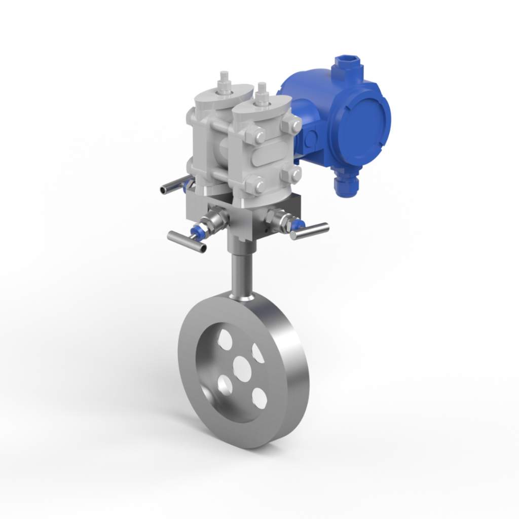 The EPSILON flow meter model EP1 consists of a primary element based on the differential pressure principle, a flange manifold for double flanged valve manifold