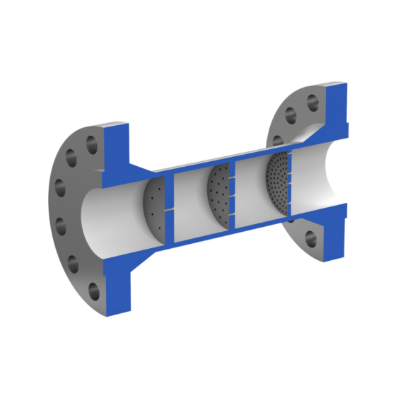 The EMCO single hole multi stage pressure reducing units (SDP-L) are used to prevent critical/high pressure drops in continuous liquid flow pipe lines. EMCO multi hole multi stage pressure reducing units (MDP-L) are used to prevent critical/high pressure drops in continuous liquid flow pipe lines. Multi hole plates can handle higher pressure drops than single hole plates.