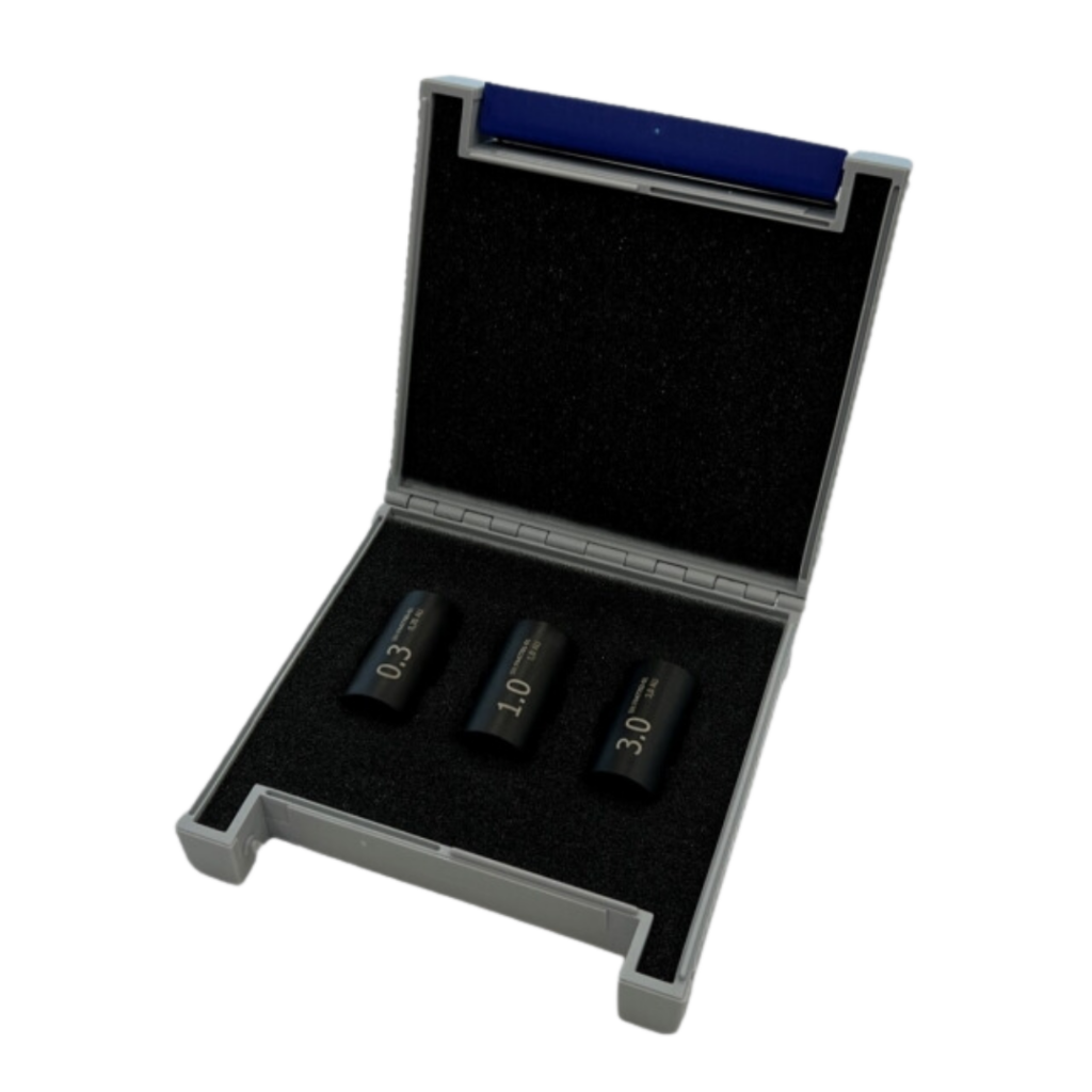 EXcap 110 is a set of optical reference filters for verification or adjustment of Exner-NIR sensors. This set can be equipped with up to three individually selectable single filters to verify the corresponding sensors in their ideal measuring range. The optical filters can be easily attached on to the measuring gap and they are optimally fixed during verification or adjustment. The optical filters are traceable according to NIST standard and can be verified at the factory.