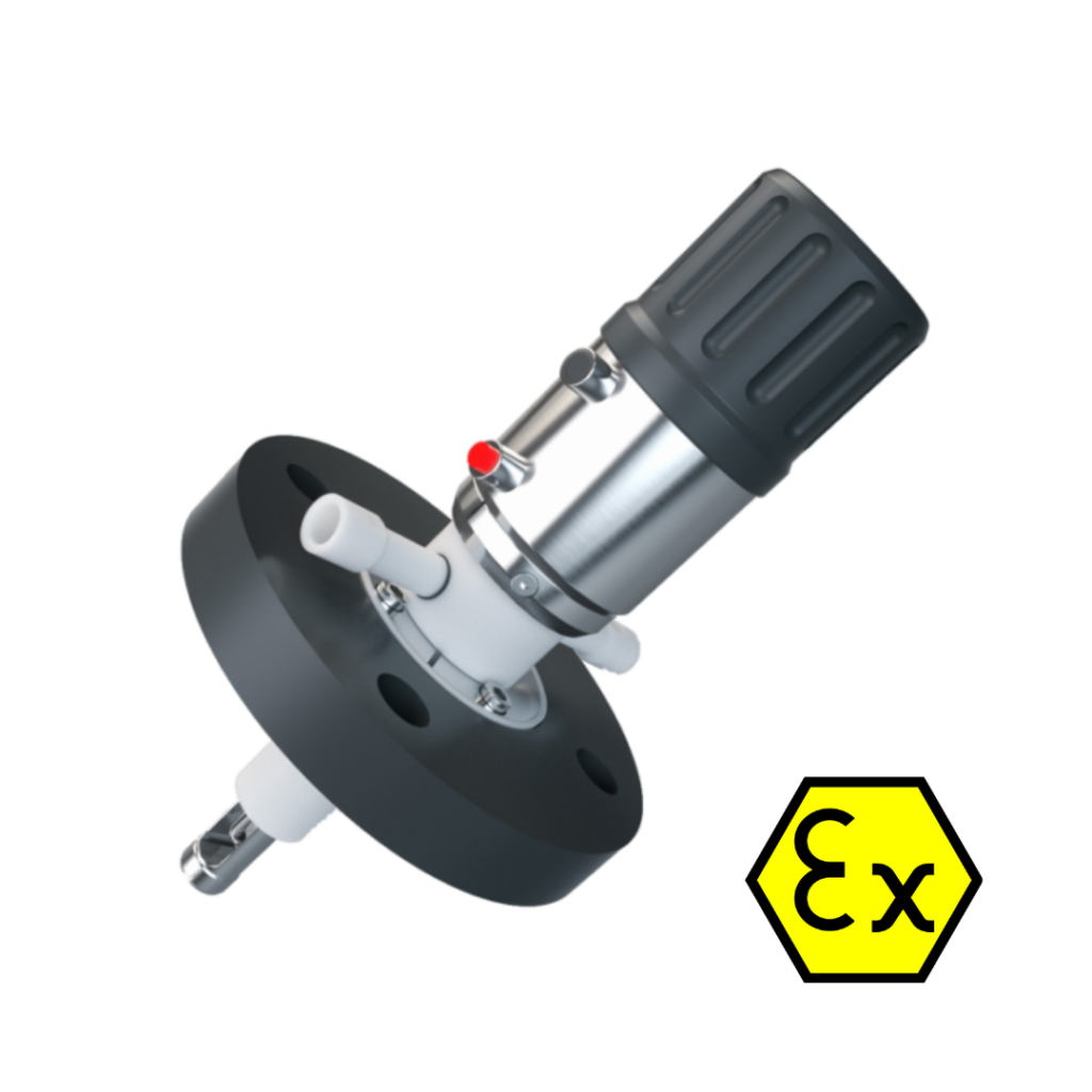 The Exner Extract 820M is a manually operated retractable probe housing made of plastics to be attached on process tanks or tubing. The drive unit inserts the Sensor into the process medium and back into the cleaning chamber. When reaching the final position of the “measuring” or “service” position a safety knob locks each position automatically. Cleaning, rinsing and calibration of the sensor is possible while the process is running.