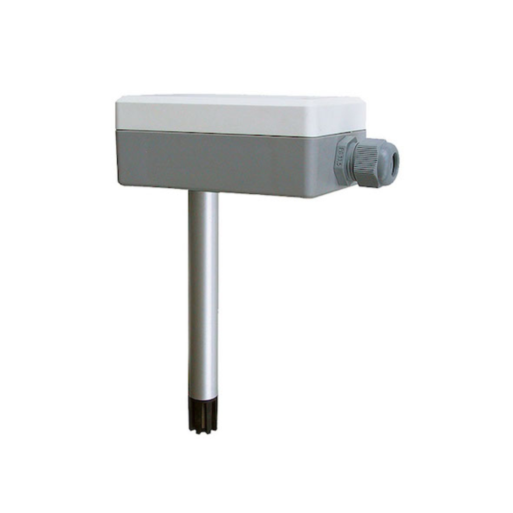 The Müller Channel Humidity Sensor measures the air humidity by means of a humidity dependent capacitor. The capacitive humidity measuring element, manufactured with thin-film technology, is composed of a carrier panel, on which the electrodes are deposited, topped by a hygroscopic polymer layer. The hygroscopic polymer layer absorbs the water molecules out of the medium (air) to be measured, or delivers them and consequently alters the capacity of the capacitor. In the following electronic circuit the alteration of the capacity is processed into the standardised signals 0…20 mA, 0…10 VDC or 4…20 mA by an integrated signal pre-processing. The measuring element is protected by a protecting basket. The sensors are designed for an unpressurised system, the measuring medium is non-aggressive and non-condensing air. Optionally the sensors have a semiconductor temperature sensing device in order to acquire the temperature simultaneously. Its measuring values are also converted into the standardised signals 0…20 mA, 0…10 VDC or 4…20 mA.