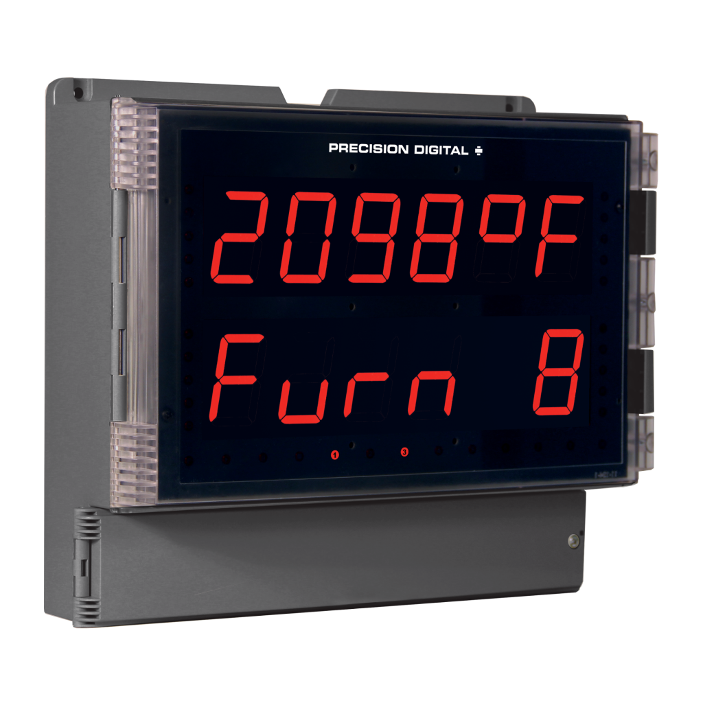 What sets the Helios apart from other Large Display Meters is its dual line display with super bright LEDs that can be read even in bright sunlight and up to 100 feet away. Based on Precision Digital’s popular line of ProVu® digital panel meters, the Helios can satisfy a wide variety of level, flow, temperature, pressure, & weight applications. It is available with models that accept 4-20 mA, thermocouple, RTD, pulse, strain gauge, AC and DC volts and current, and even Modbus®.