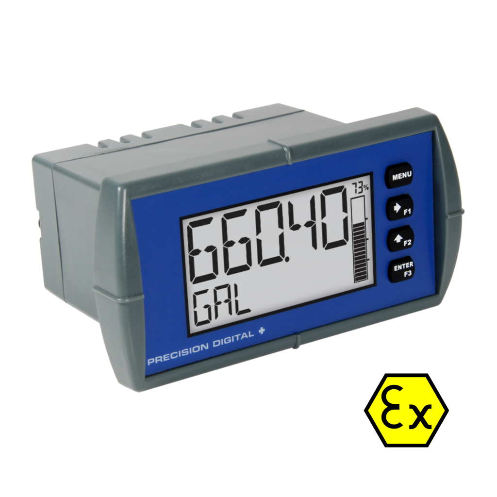 The Loop Leader PD6600 is an ATEX, IECEx approved, and UL listed, intrinsically safe and nonincendive, loop-powered, 1/8 DIN process meter. A dual-line display featuring five digits on the top line and eight digits on the bottom line, preprogrammed engineering units, loop-powered backlight with a unique red backlight option for alarm conditions, and optional bargraph display (PD6608) or feet & inches display (PD6607) provide a clear and attractive presentation of the process. All models come equipped with two open collector outputs and are available with two solid state relays and a 4-20 mA analog output. These outputs can be programmed for alarm indication, signal retransmission via pulse or analog signal, pump control, and a number of other useful features. The fact that this meter is loop-powered means that there is no need to run additional, costly power lines; the meter gets all of the power it needs from the 4-20 mA loop. The Loop Leader loop-powered process meter is built in a shallow-depth case with a IP65 front and features loop-powered backlighting and a wide -40 to 158°F (-40 to 70°C) operating temperature range. It doesn’t matter if it’s hazardous areas, indoors or outdoors, in bright sunlight or a dimly lit plant, or in an area that is wet, dirty, hot, or cold, the Loop Leader can go just about anywhere.