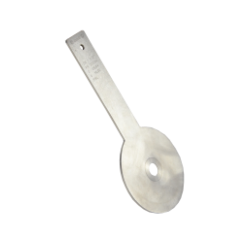 Paddle orifice plates for the installation between flanges or pipe taps consist of the orifice plate with a welded-on handle. The plates have no pressure taps and are therefore typically mounted between flanges containing ½” NPT pressure taps.